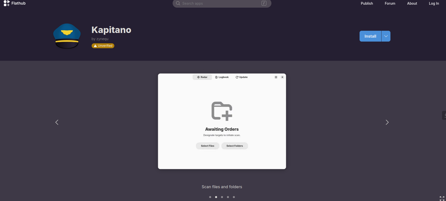 Kapitano — это приложение с интерфейсом на базе GTK4 и libadwaita, предназначенное для упрощения работы с антивирусным движком ClamAV. Программа позволяет проводить сканирование файлов и папок по запросу, используя базу сигнатур вирусов, троянов и другого вредоносного ПО, предоставляемую ClamAV. Приложение не выполняет функции реального времени и не предназначено для комплексной защиты системы, а служит удобным инструментом для выборочного анализа.