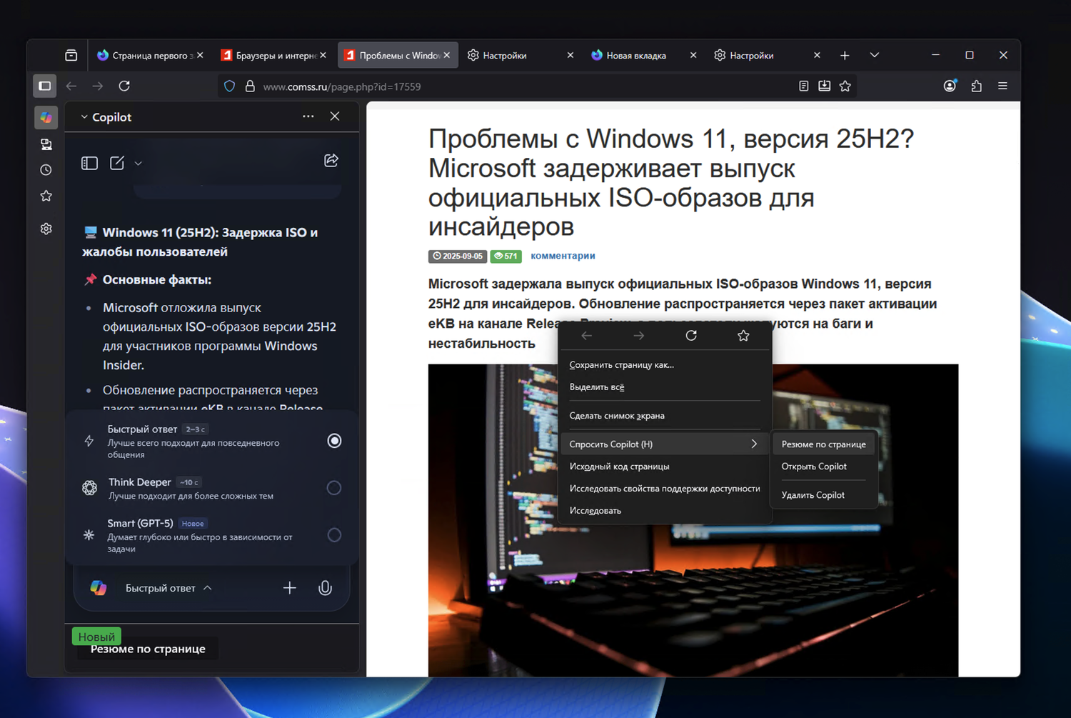 Возможности Microsoft Copilot в Firefox