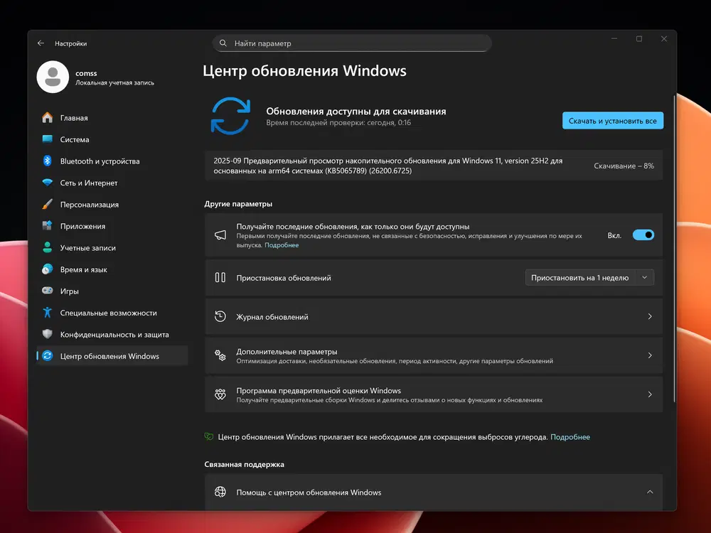 Обновлено: 30.09.2025. Обновление KB5065789 (Build 26200.6725) Preview для Windows 11, версия 25H2 доступно для установки в Центре обновления Windows как «необязательное обновление» и для ручной загрузки в Каталоге Центра обновления Майкрософт.