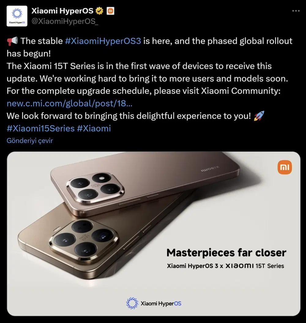 - Xiaomi 15T Pro: OS3.0.4.0.WOSEUXM