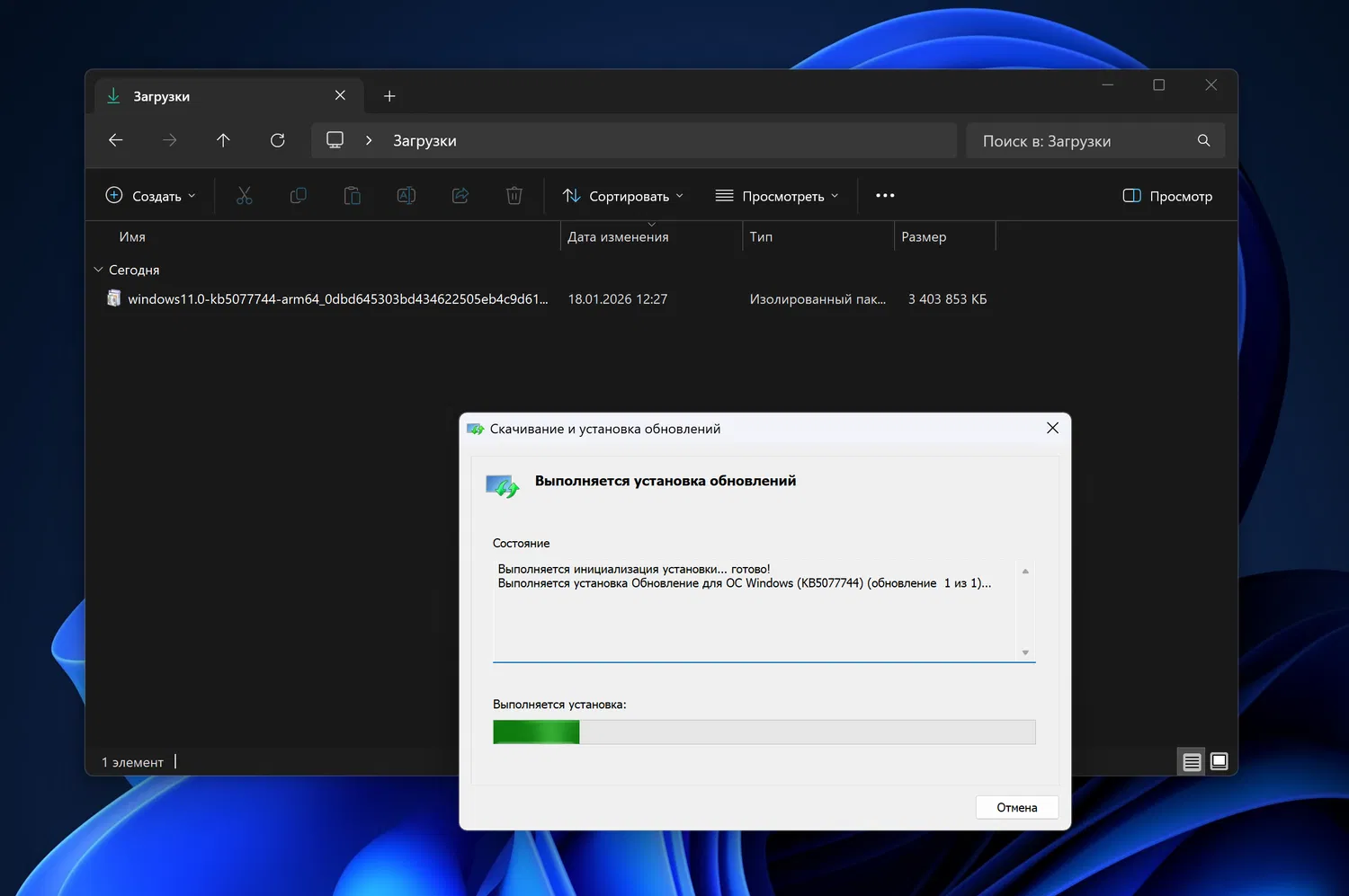 Обратите внимание! Обновление KB5077744 поставляется в формате «контрольных точек». Эти накопительные обновления будут меньшего размера и содержат только изменения с последней контрольной точки, что ускорит процесс загрузки и установки, экономя трафик и дисковое пространство. Таким образом, перед его установкой вручную необходимо установить предыдущие обновления – KB5043080 (Build 26100.1742) для Windows 11, версия 24H2.