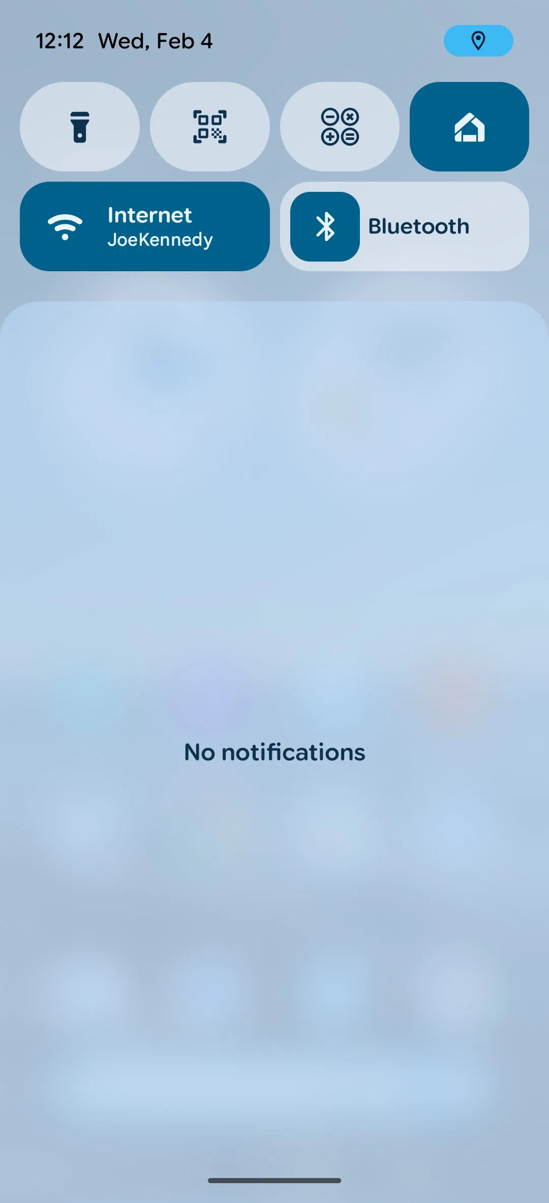 При использовании геолокации в строке состояния появляется небольшой синий индикатор в правом верхнем углу экрана. Если открыть панель уведомлений или быстрых настроек, индикатор разворачивается в более заметный элемент. Нажав на него, пользователь может увидеть, какое именно приложение использует геолокацию, а также сразу закрыть его или изменить разрешения на доступ к местоположению.