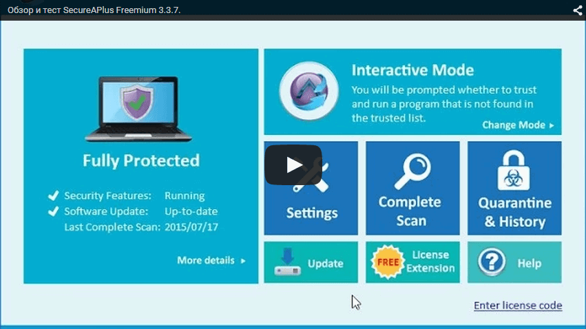В тестировании принимала участие версия SecureAPlus Freemium 3.3.7.