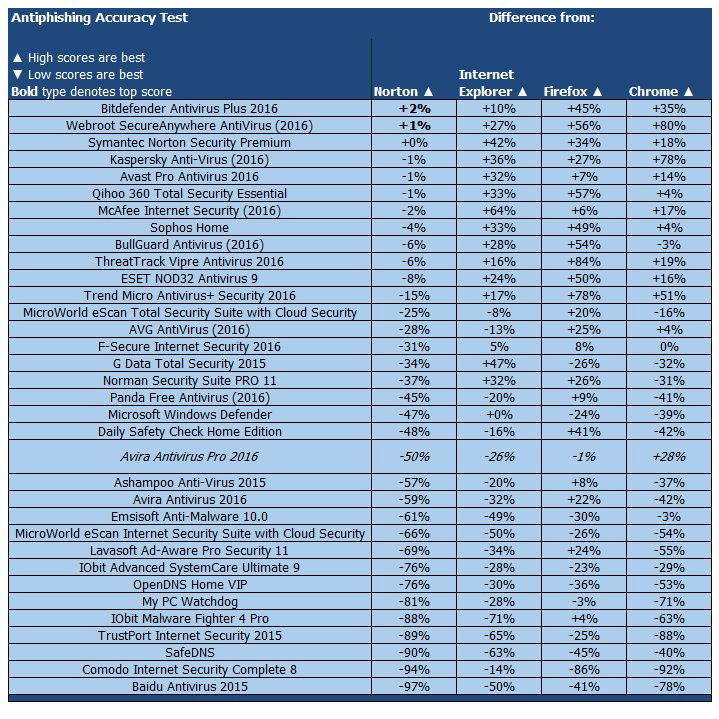Единственной областью защиты, где Pro-версия отработала лучше бесплатного издания стала защита от фишинга. Оба продукта включают плагин Browser Safety - дополнение для браузеров Google Chrome и Firefox. Pro-версия добавляет веб-защиту, которая работает ниже уровня браузера. При тестировании модуль веб-защиты обнаружил несколько мошеннических угроз, которые пропустил Browser Safety. Тем не менее, этого оказалось недостаточно, чтобы существенно повысить итоговый результат. Если бесплатный антивирус Avira на 59 процентов отстал от Norton, то Pro-версия обнаружила на 50 процентов меньше угроз, чем решение Symantec. Оба продукта уступили эффективности собственной защиты двух из трех браузеров.