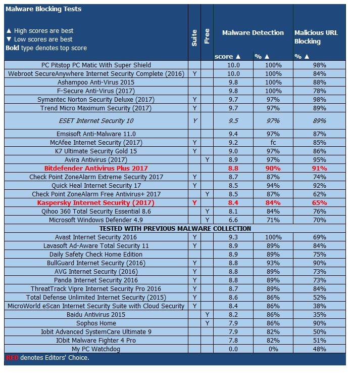 Звание “Выбор редакции” в категории комплексных антивирусов по-прежнему остается у Bitdefender Internet Security и Kaspersky Internet Security.