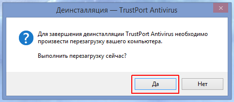 После перезагрузки, антивирусные программы TrustPort будут полностью удалены из вашей системы.