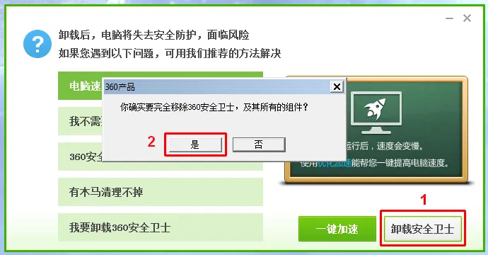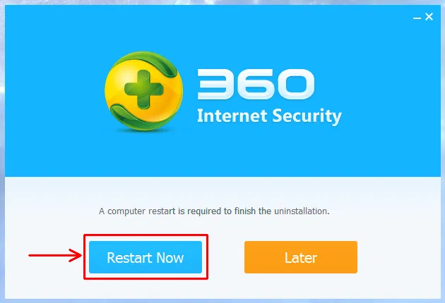 После перезагрузки, антивирус 360 Internet Security будет полностью удалён с компьютера.