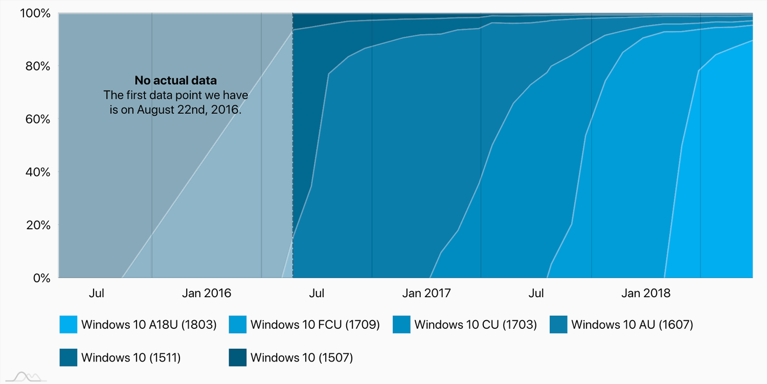 Единственная причина, по которой Windows 10 (версия 1709) могла превысить 90-процентную долю, заключается в том, что выпуск ее преемника - Windows 10 версии 1803 - был отложен. Это также означает, что промежуток времени между релизами April 2018 Update и October 2018 Update (версия 1809) оказалась короче.