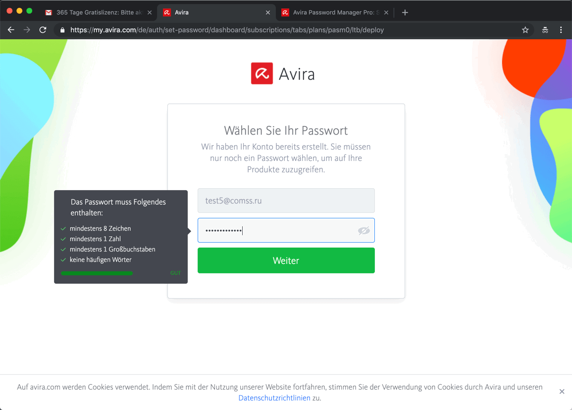 2. В полученном письме перейдите по ссылке Akzeptieren und installieren и выполните регистрацию нового аккаунта Avira.