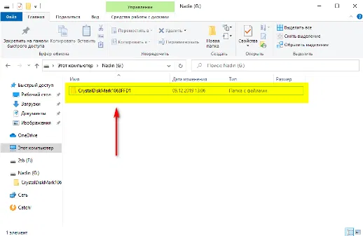 На рисунке ниже показан данный тестовый файл, который был создан программой CrystalDiskMark в период тестирования накопителя.