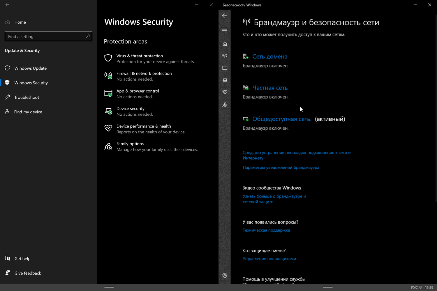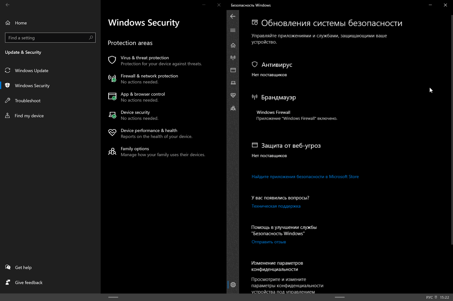 В Windows 10 приложение Безопасность Windows является единым центром, объединяющим все функции безопасности, в том числе родительский контроль, брандмауэр и антивирусное ядро Microsoft Defender. В Windows 10X будут доступны все эти инструменты, за исключением антивирусного движка Microsoft Defender.