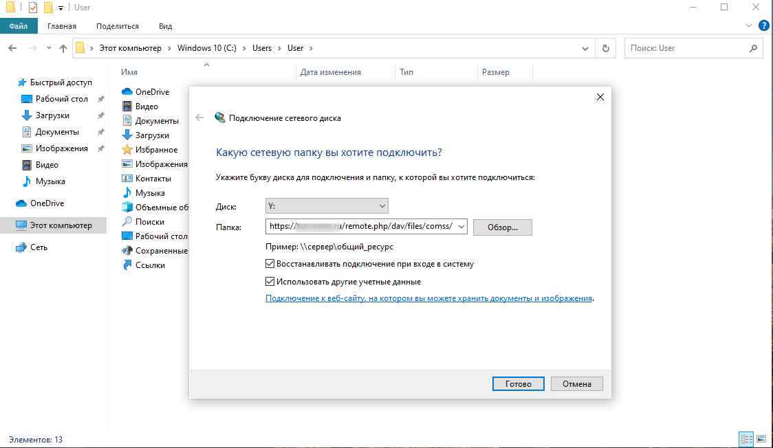 Чтобы подключиться к каталогу WebDAV в Windows 10, вам понадобится URL-адрес облачного хранилища по протоколу WebDAV, данные для авторизации в вашу учетную запись.