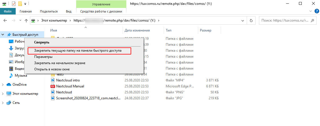 Где nextcloud – это ваша папка названия сетевого диска (этап 2 в данной инструкции).