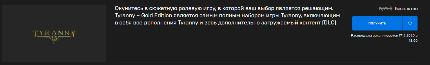 1. Перейдите на страницу Tyranny – Gold Edition в Epic Games Store