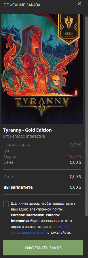 Для получения бесплатной лицензии на игру Tyranny – Gold Edition выполните следующие действия: