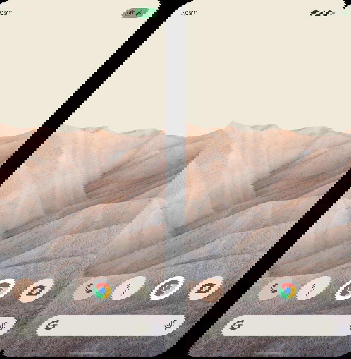 На одном из предполагаемых снимков Android 12 можно увидеть новый интерфейс панели уведомлений. Эффекты прозрачности были удалены и заменены непрозрачным светло-бежевым фоном. Цвет может зависеть от текущей темы оформления и состояния включения темного режима. Между секциями Беседы (Conversations) и Уведомления (Notifications) сохранилось разделение, а закругленные углы каждого элемента уведомлений стали более выраженными. Количество плиток быстрых настроек, которые отображаются при частичном раскрытии панели уведомлений, было уменьшено с 6 до 4 элементов — в результате значки стали больше. Дата и время поменялись позициями, а в правом верхнем углу появились новые индикаторы конфиденциальности.