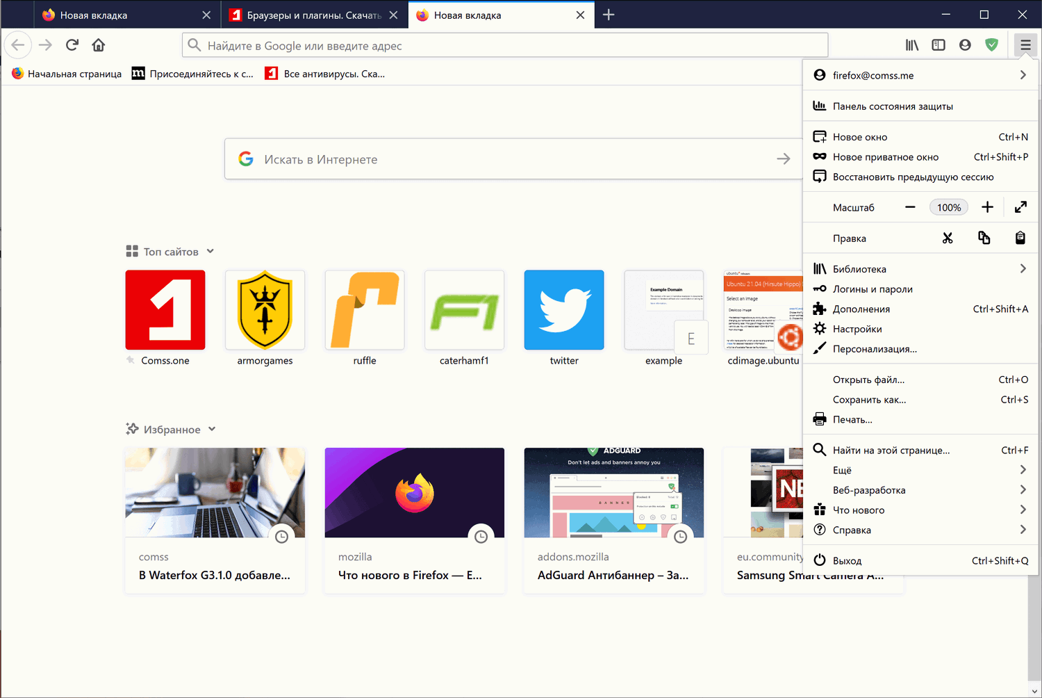 На снимке представлена обновления страницы новой вкладки, панели вкладок и основного меню браузера. Можно заметить несколько различий по сравнению с текущим дизайном Firefox, показанным на скриншоте ниже.