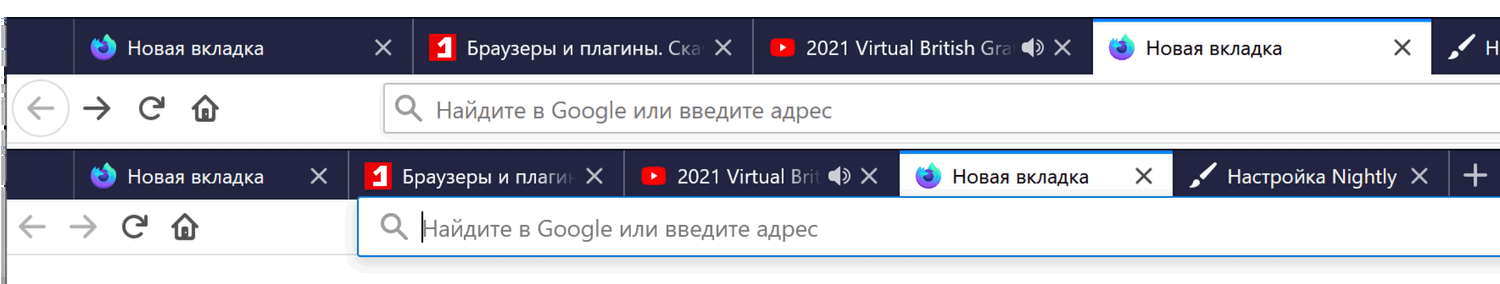 Панель вкладок стала крупнее и будет удобна для пользователей устройств с сенсорными экранами. Для остальных пользователей она может показаться слишком большой. Тем не менее, вы можете переключиться на компактное отображение панели вкладок. Разница между двумя режимами отображения показана на скриншоте ниже.