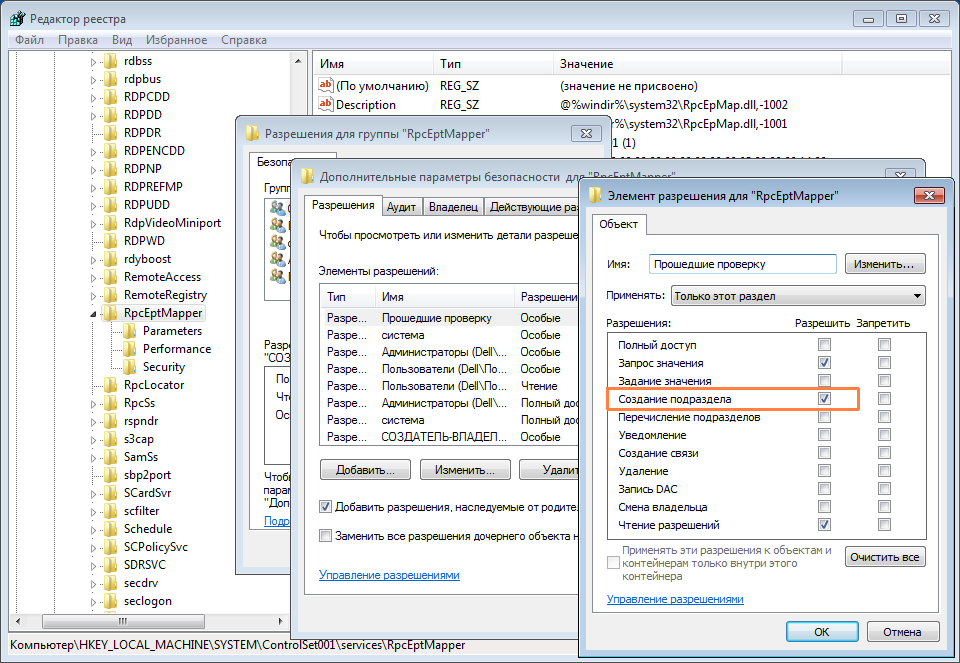 Еще в ноябре 2020 года исследователь безопасности Клеман Лабро (Clement Labro) обнаружил, что небезопасные разрешения для ключей реестра служб RpcEptMapper и DnsCache позволяют злоумышленникам обмануть службу RPC Endpoint Mapper с целью загрузки вредоносных библиотек DLL в системы Windows 7 и Windows Server 2008R2.