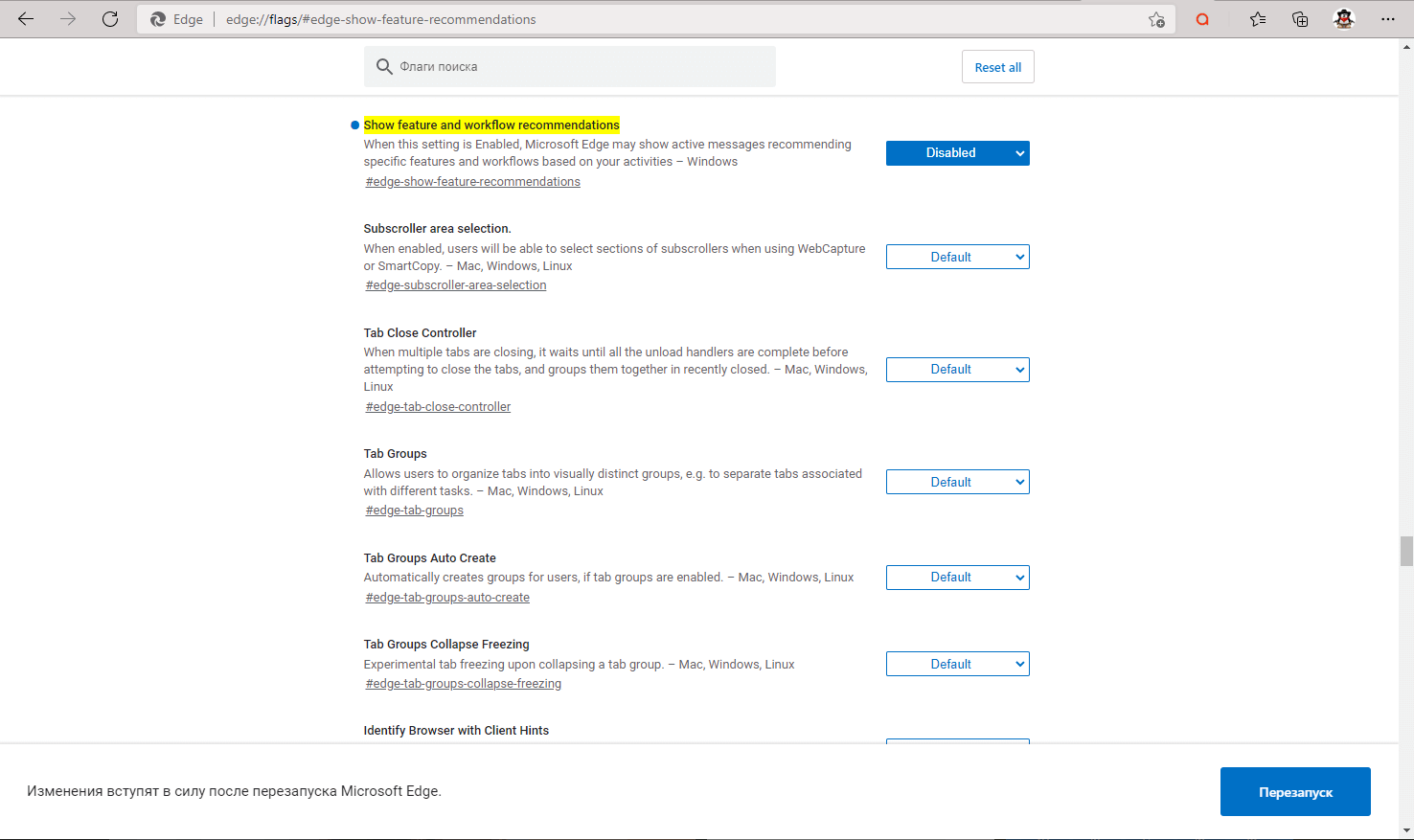 edge://flags/#edge-show-feature-recommendations