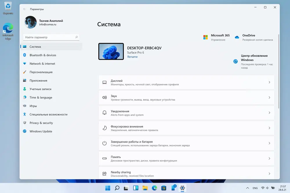 Microsoft разработали новое приложение «Параметры», чтобы оно было красивым, простым в использовании и включало в себя все ваши возможности Microsoft в Windows 11. В «Параметры» реализована левосторонняя навигация, которая сохраняется между страницами, и Microsoft добавили навигационную цепочку (меню «хлебные крошки») по мере углубления в настройки, чтобы помочь вам понять, где вы находитесь, и не потерять свое место. Страницы «Параметры» также полностью новые, с новыми элементами управления в верхней части, которые выделяют ключевую информацию и часто используемые параметры для настройки по мере необходимости. Эти новые элементы управления расположены на страницах нескольких категорий, таких как Система, Bluetooth и устройства, Сеть и Интернет, Персонализация, Учетные записи и Обновление Windows. Microsoft также добавили расширяемые поля для страниц с большим количеством настроек.