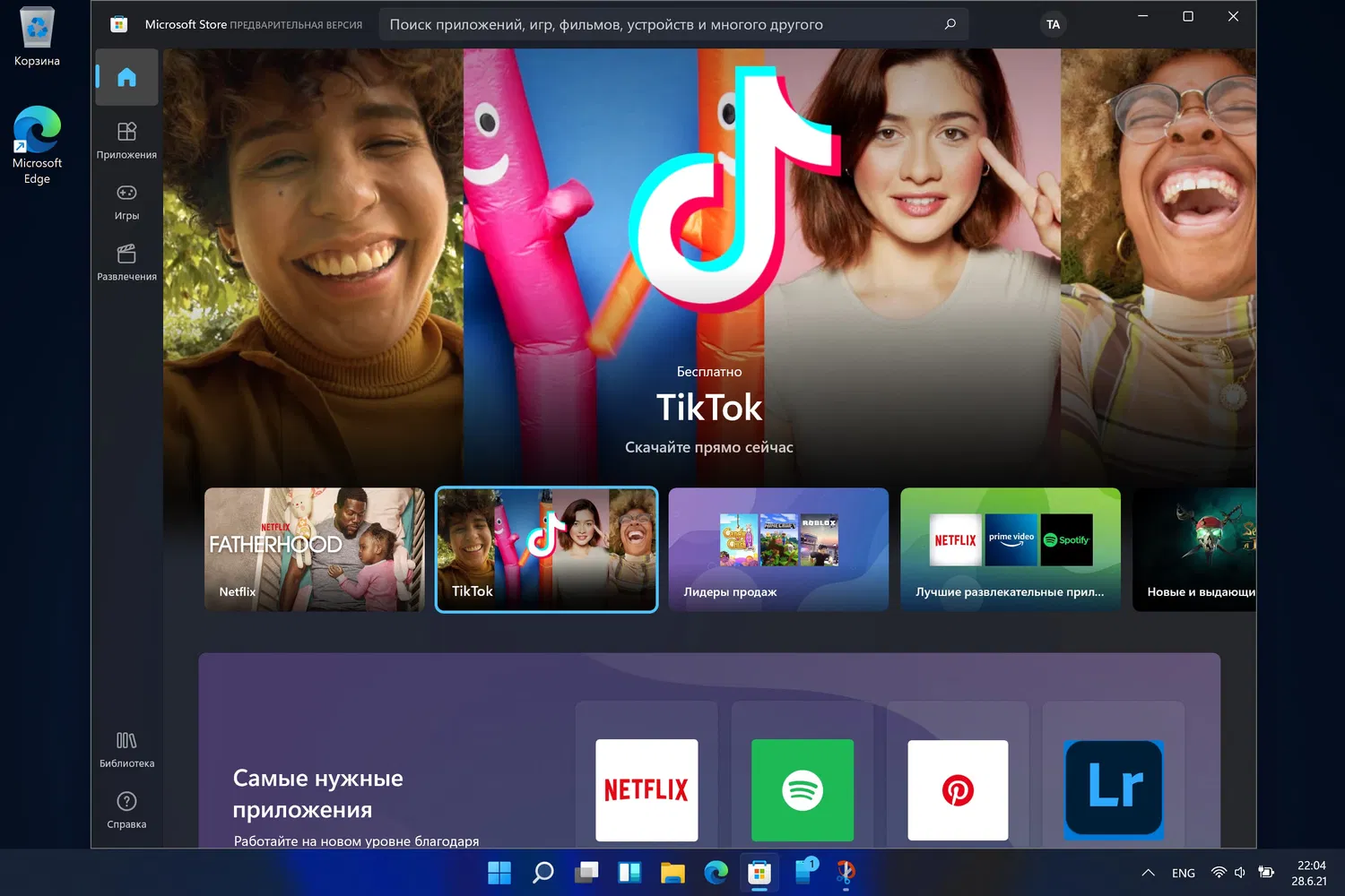 В сегодняшней сборке Windows 11 вы сможете опробовать раннюю предварительную версию нового Microsoft Store. Microsoft будем продолжать создавать и совершенствовать магазин приложений и игр. Эта сборка демонстрирует первый взгляд на совершенно новый дизайн Microsoft Store; в ближайшие месяцы вы увидите, как разработчики добавят другие функции, о которых мы рассказывали на прошлой неделе.