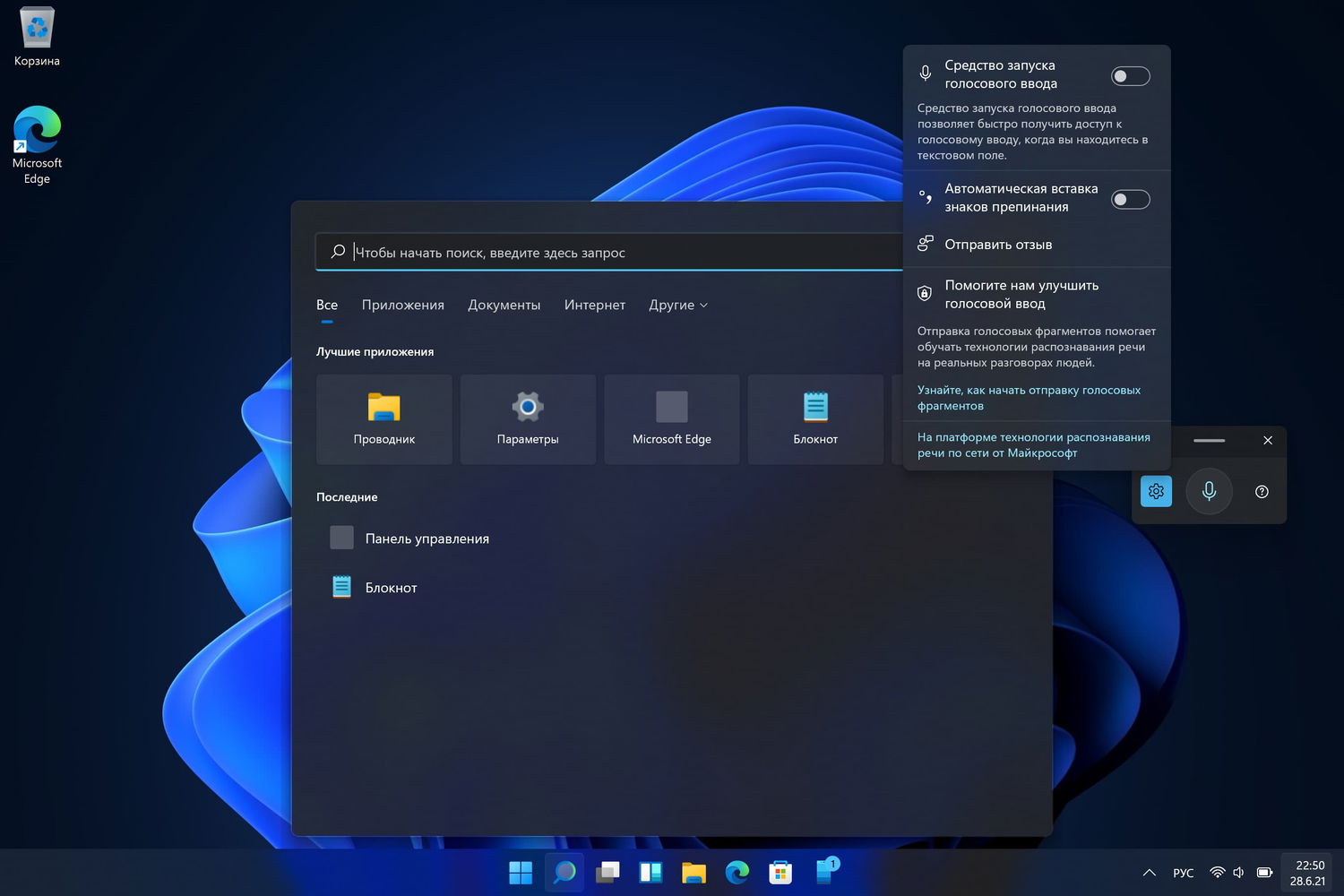 - Средство запуска голосового ввода: Новое средство запуска голосового ввода - это быстрый и простой способ запустить голосовой ввод в выбранном текстовом поле. По умолчанию она выключена, но вы можете включить ее в настройках голосового набора текста (WIN + H для запуска голосового набора текста), а затем разместить ее в любом удобном месте экрана.