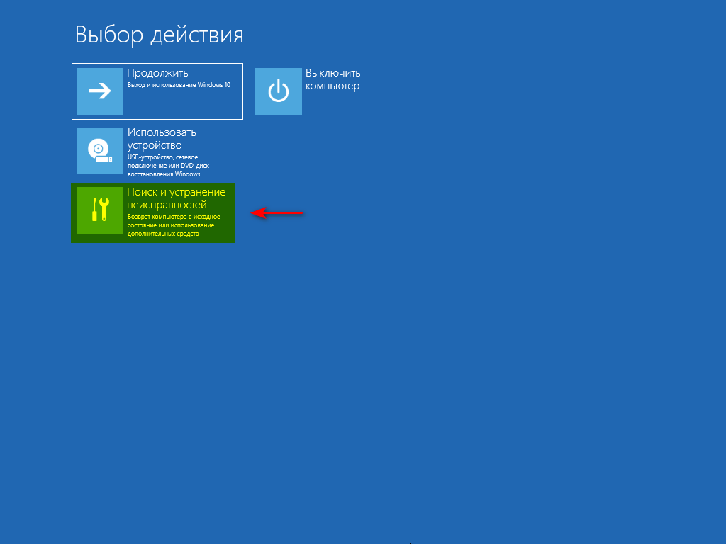- В окне Выбор действия указать Поиск и устранение неисправностей