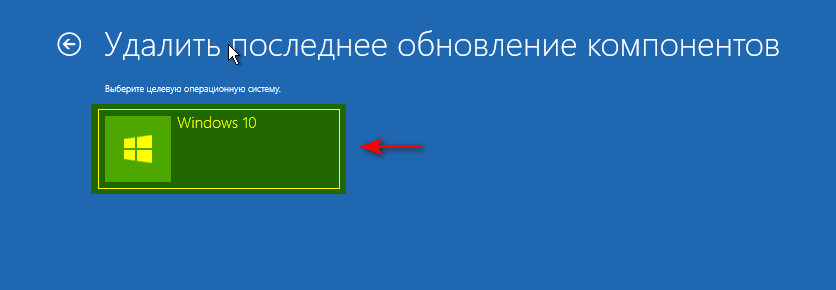 - В окне Удалить последнее обновление компонентов выбрать целевую операционную систему Windows 10