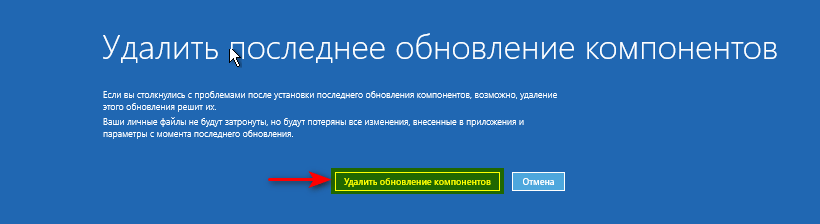 - На заключительном этапе выбрать Удалить обновление компонентов