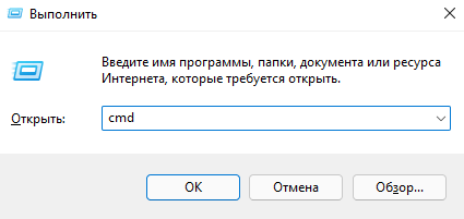 - В открывшимся окне Выполнить ввести cmd и зажав клавиши Ctrl+Shift, нажать ОК.