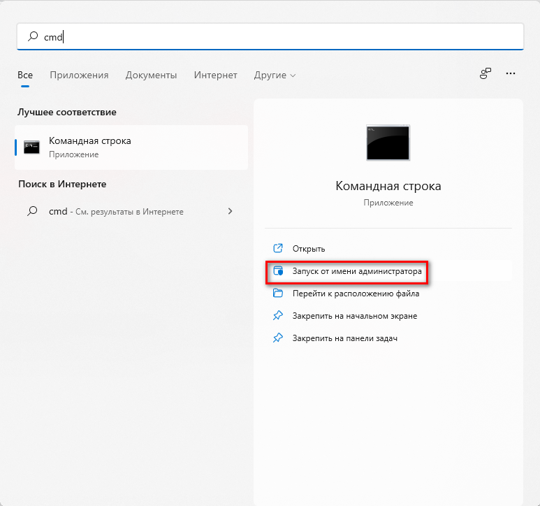 - Откройте Командную строку от имени Администратора (Windows PowerShell тоже подойдет).