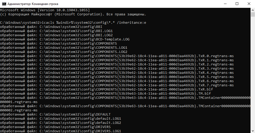 - Заблокируйте доступ «пользователей» к конфиденциальным файлам реестра, введя следующую команду и затем нажмите на клавишу Enter:
