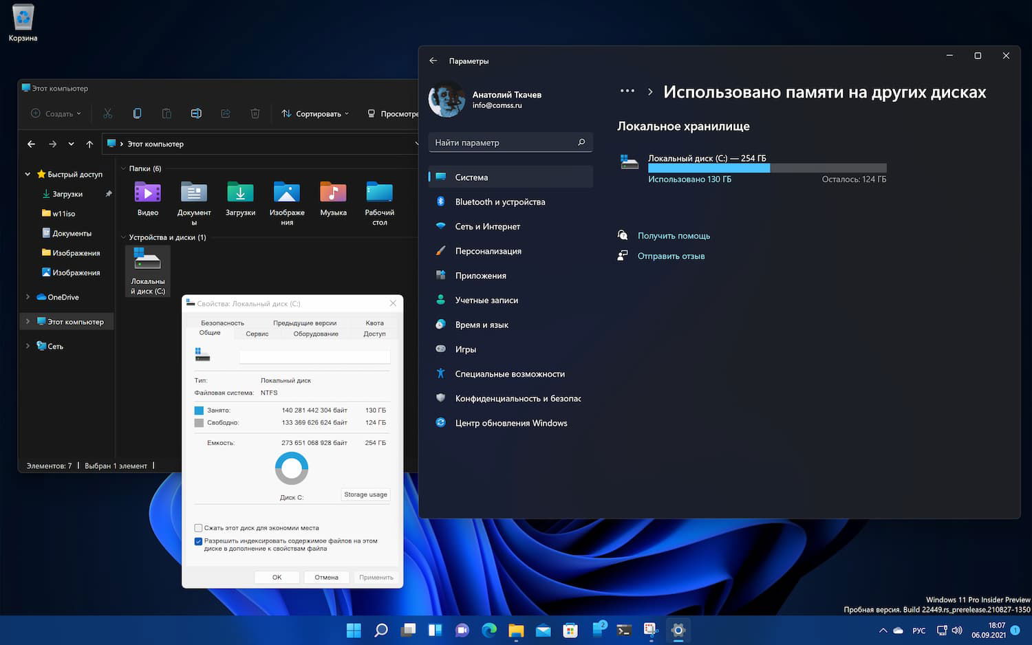 До сих пор, получить доступ к «Очистке диска» можно было из диалогового окна «Свойства» диска Windows. В новейшей сборке Windows 11 Build 22449 (Dev) ссылка была заменена и теперь открывает страницу «Использование памяти» в приложении «Параметры».