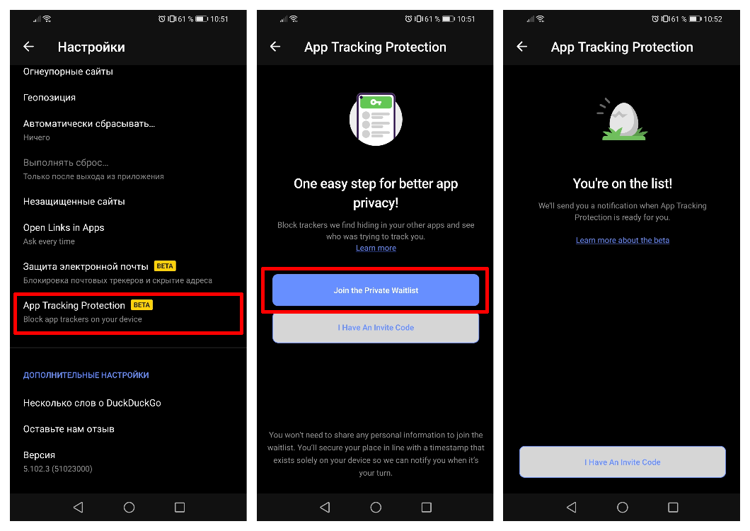 В последнем релизе DuckDuckGo Privacy Browser 5.102.3 представлена еще одна новая функция — защита от отслеживания в приложениях (App Tracking Protection). В заметках к выпуску сообщается: