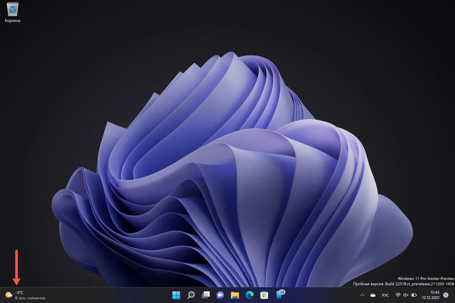 • Информация о местной погоде будет интегрирована в новую кнопку виджета. Помните, в Windows 10 функция "Новости и интересы" отображается в правой части панели задач. Аналогично, кнопка Виджет будет показывать погоду.