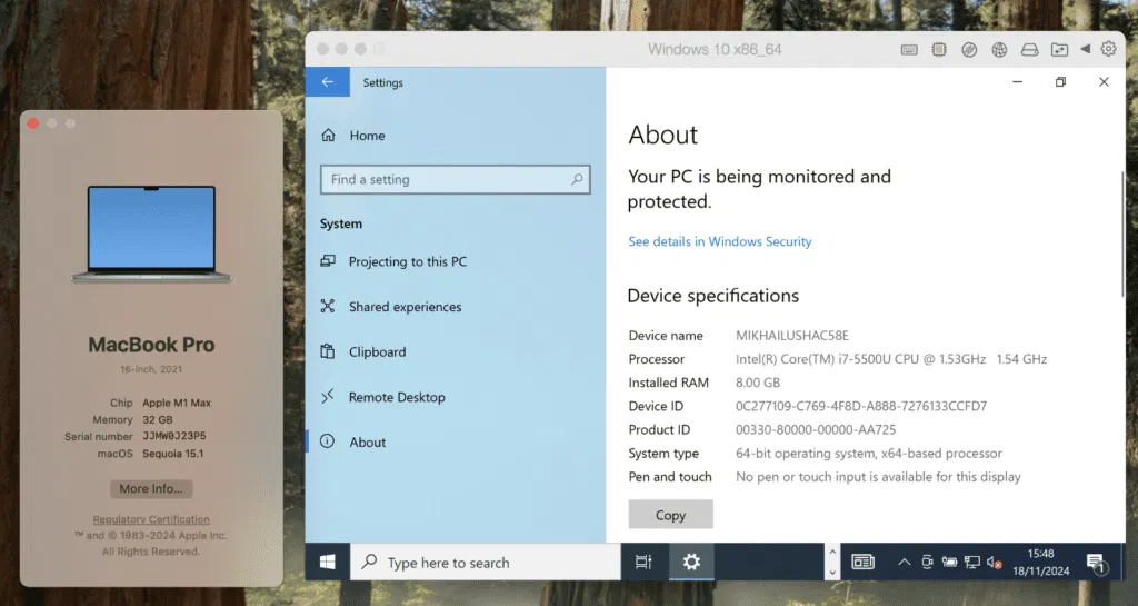 В версии Parallels Desktop 20.2 появилась поддержка эмуляции x86 для Mac с чипами M1 и выше. Технология позволяет запускать дистрибутивы Windows и Linux для процессоров x86_64, но имеет ограничения, включая низкую производительность и отсутствие поддержки USB-устройств