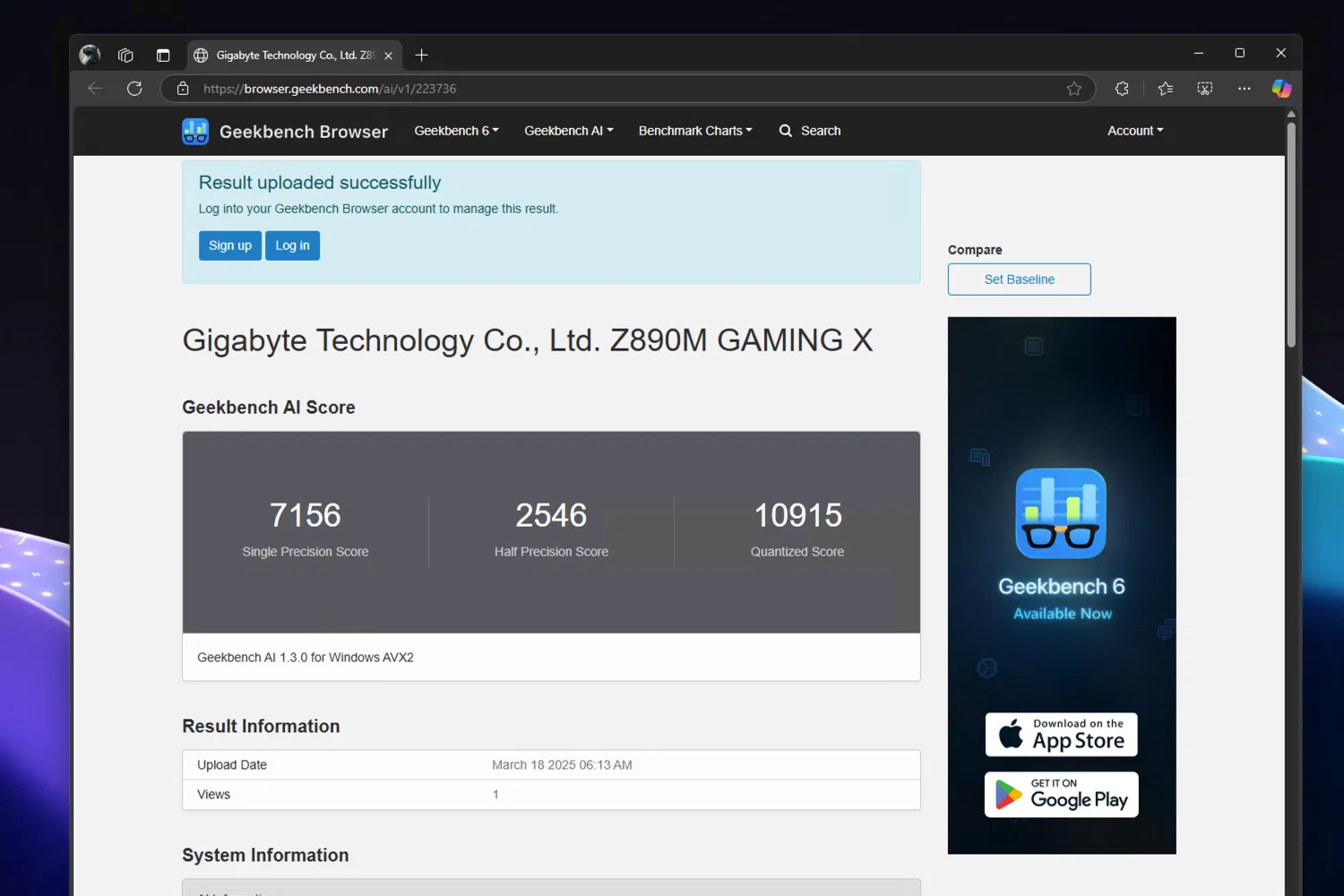 Скриншоты Geekbench AI