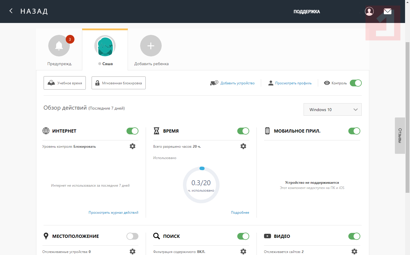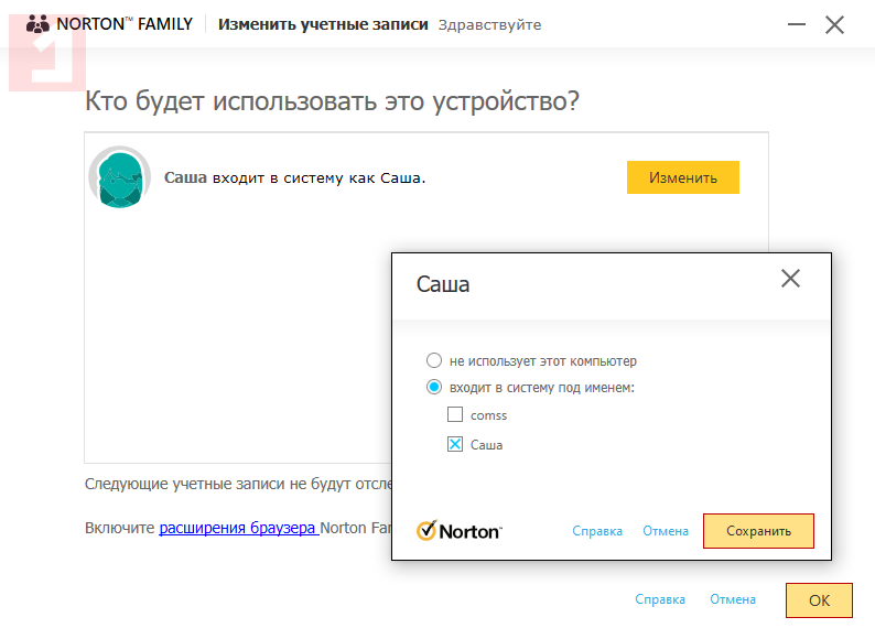 Скриншоты Norton Family