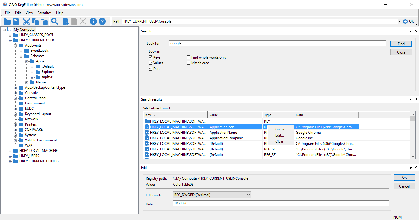 Скриншоты O&O RegEditor