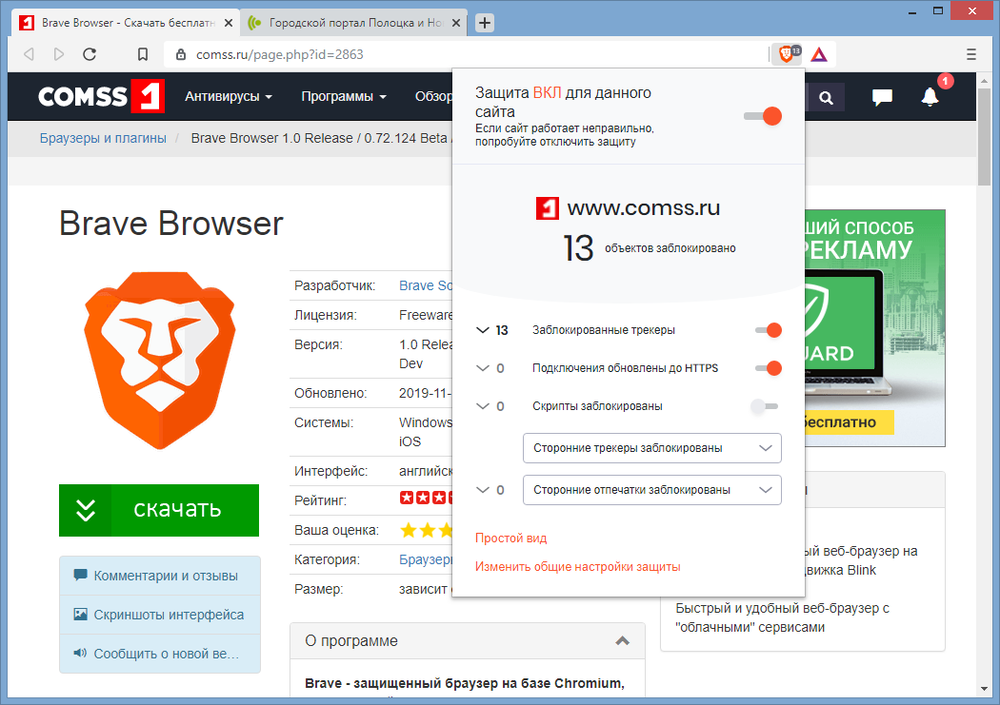 Скриншоты Brave Browser