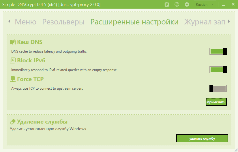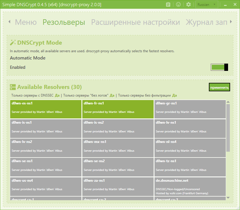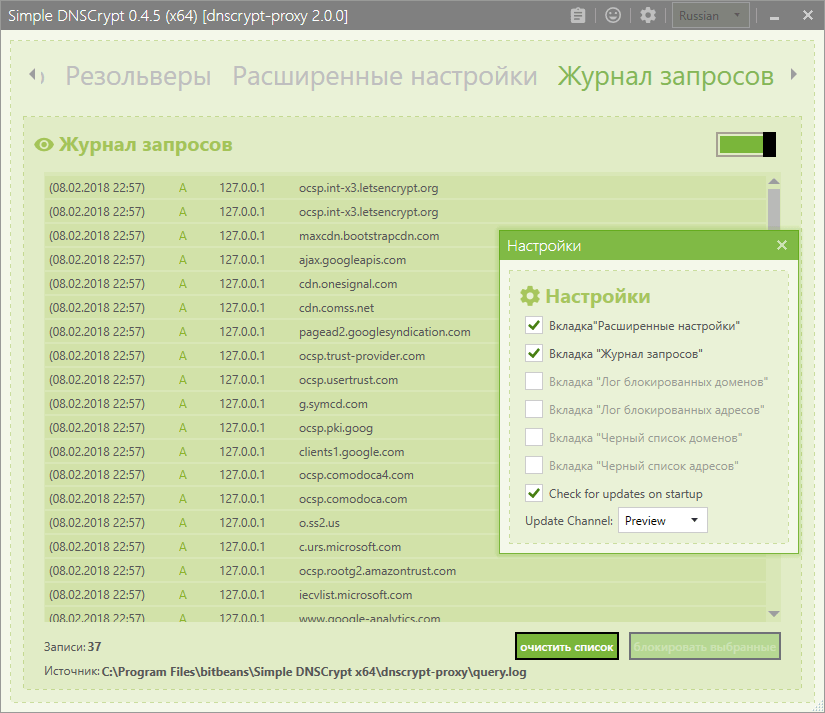 Скриншоты Simple DNSCrypt