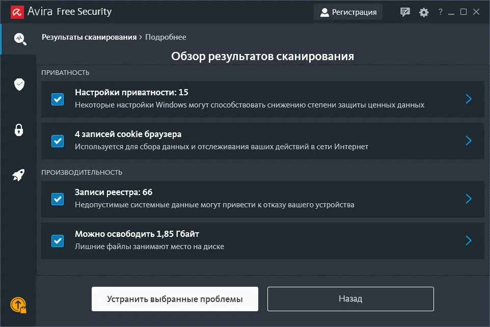 Скриншоты Avira Free Security