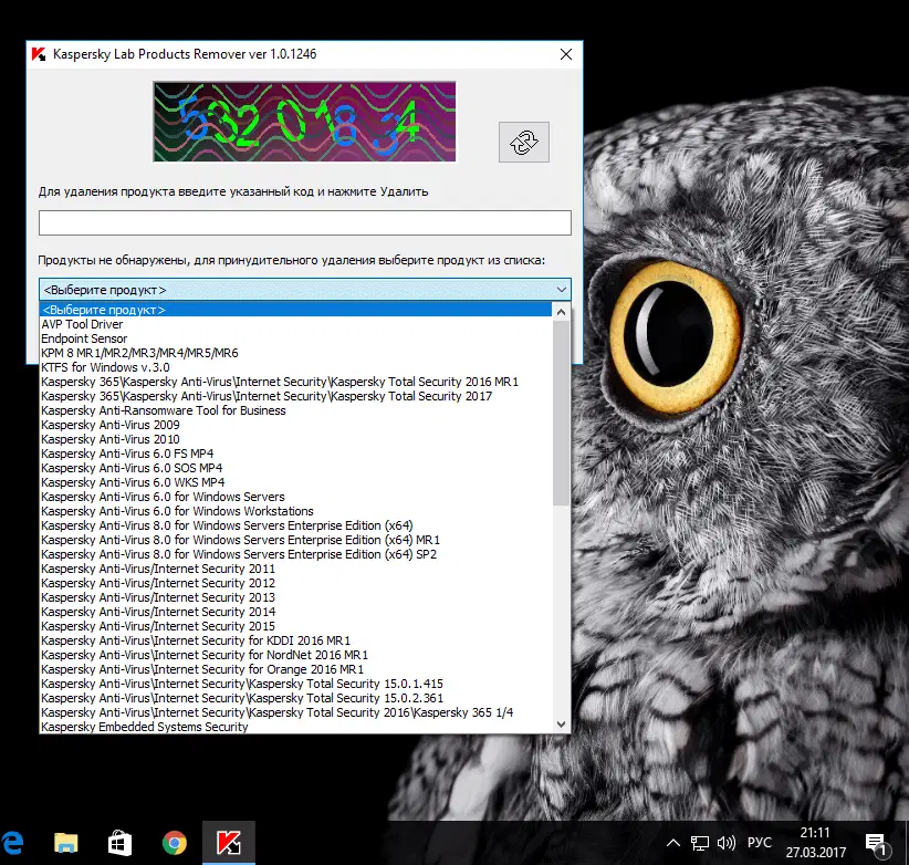 Скриншоты Kaspersky Products Remover
