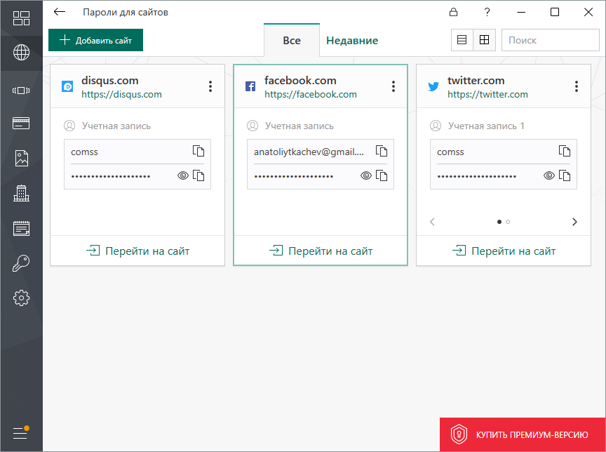 Скриншоты Kaspersky Password Manager