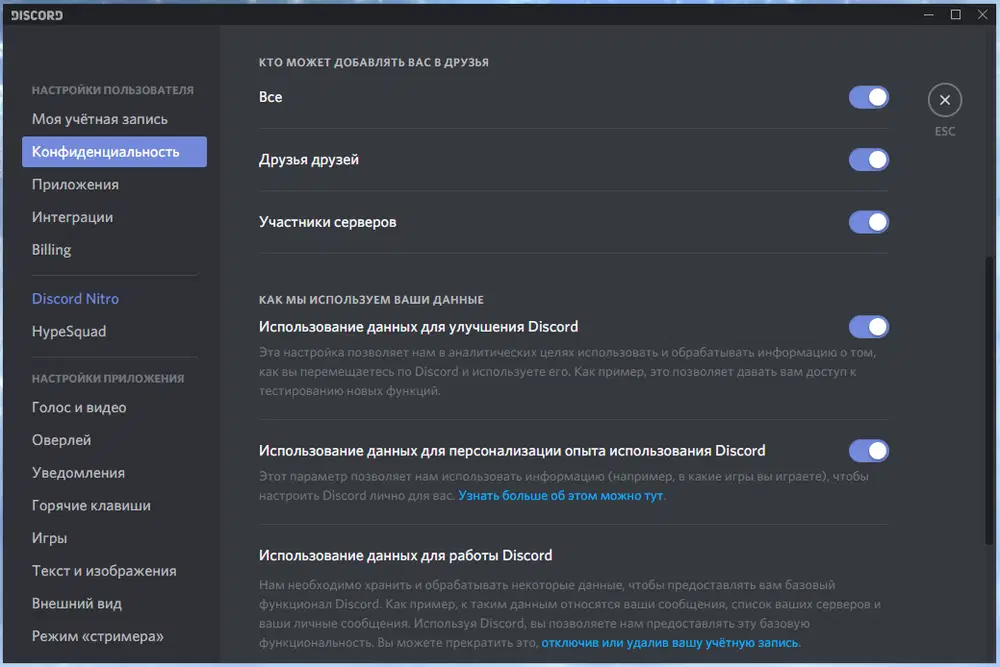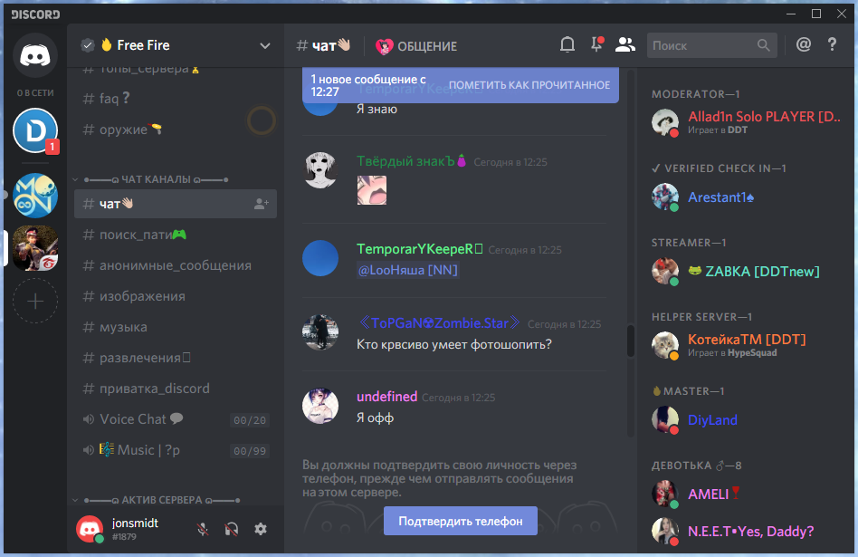 Скриншоты Discord