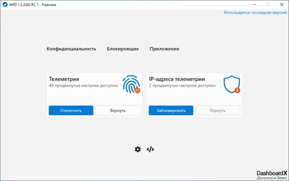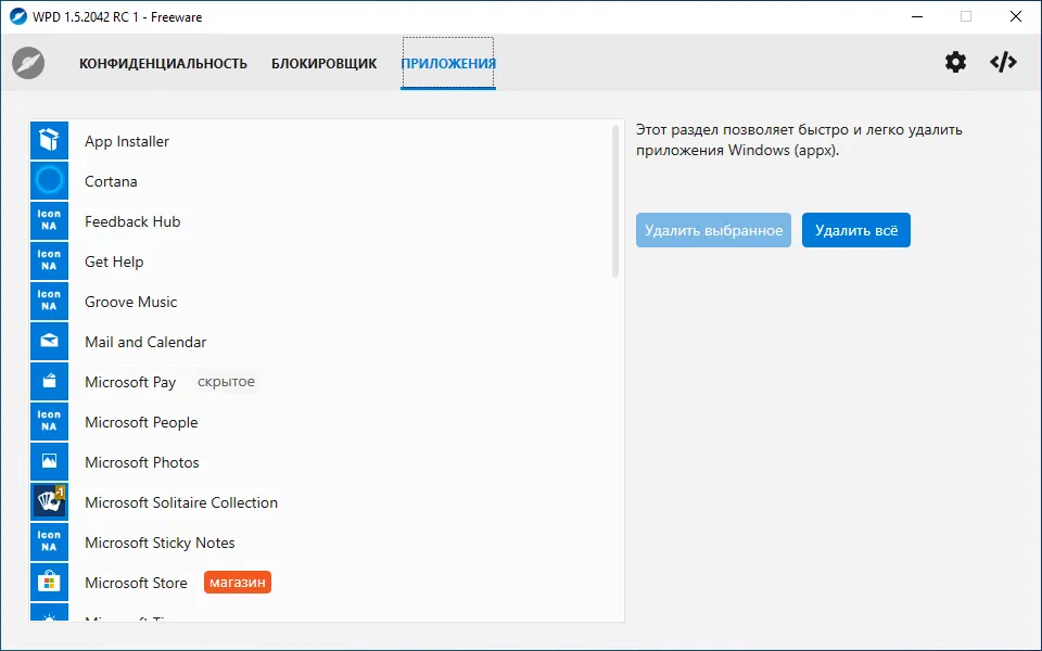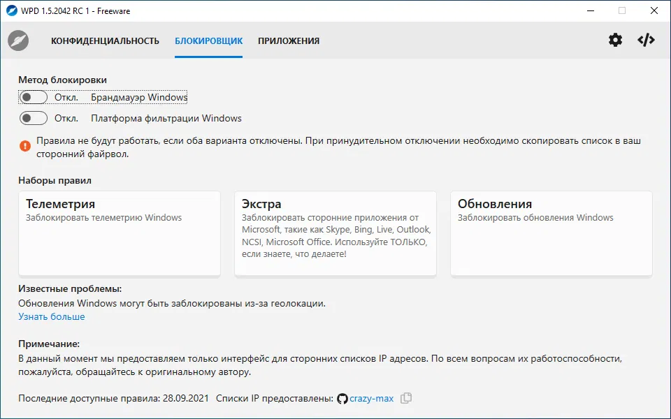 Скриншоты Windows Privacy Dashboard (WPD)