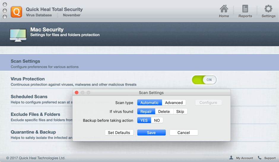 Скриншоты Quick Heal Total Security для Mac