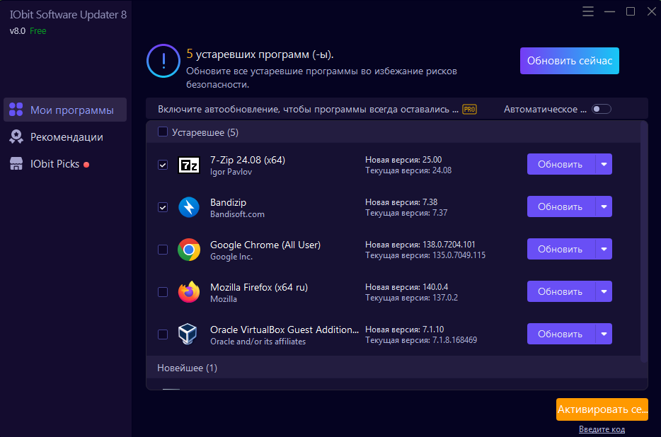 Скриншоты IObit Software Updater Free