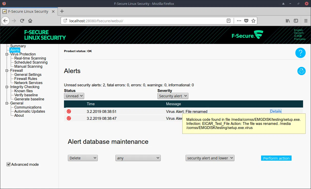Скриншоты F-Secure Linux Security 64